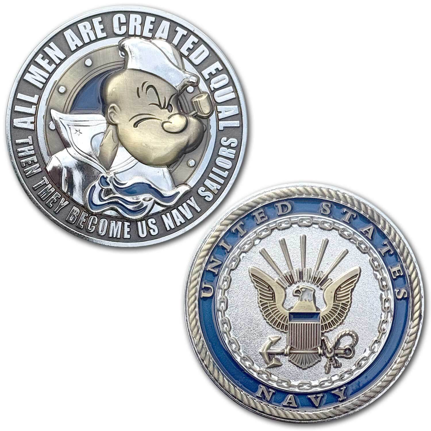 Popeye The Sailor All Men are Created Equal Then They Become US Navy Sailors Veteran Collectible Challenge Coin