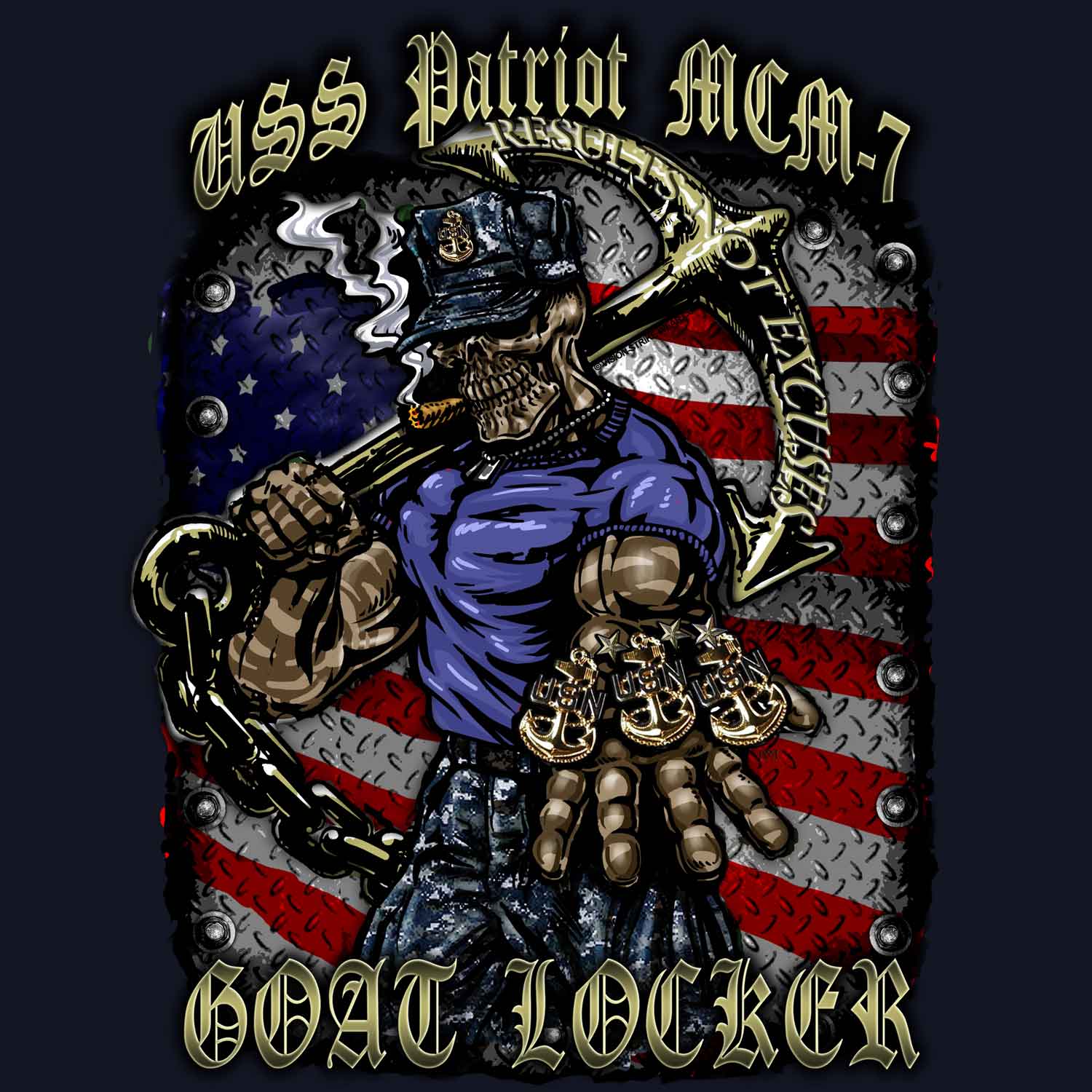 USS-Patriot MCM-7 Goatlocker Results Not Excuses Navy Veteran 3-18 Inch Custom Decal Sticker Details