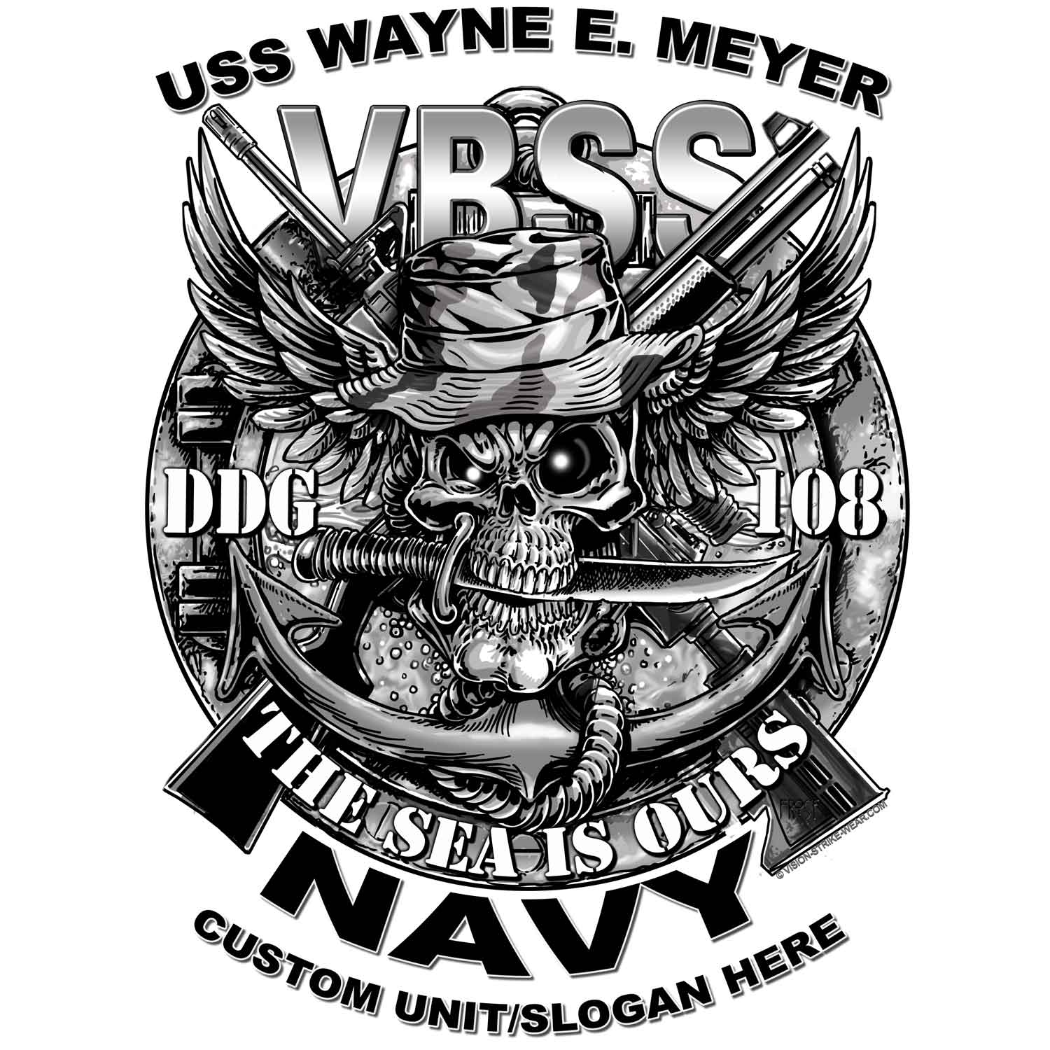 VBSS Wayne E Meyer DDG-108 The Sea Is Ours Navy Veteran 3-18 Inch Custom Decal Sticker