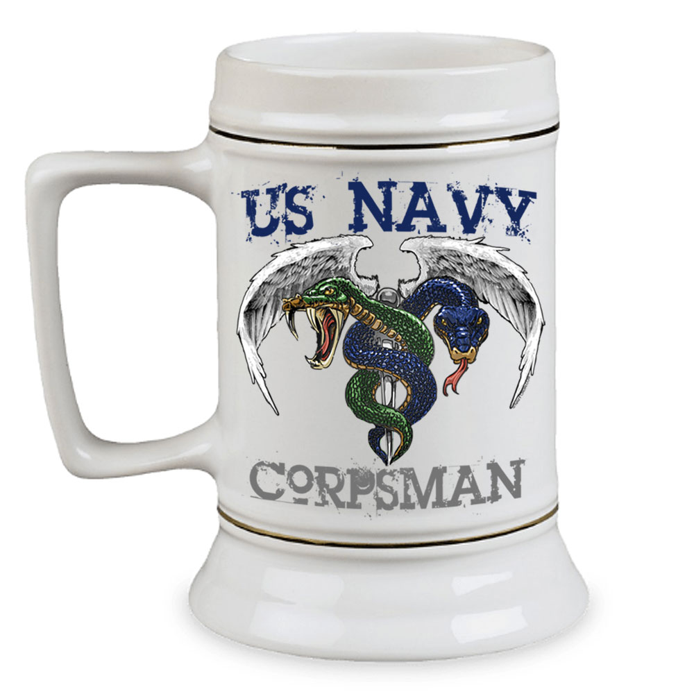 Corpsman Blue and Green Caduceus Veteran Navy Custom 28 oz Stein Details