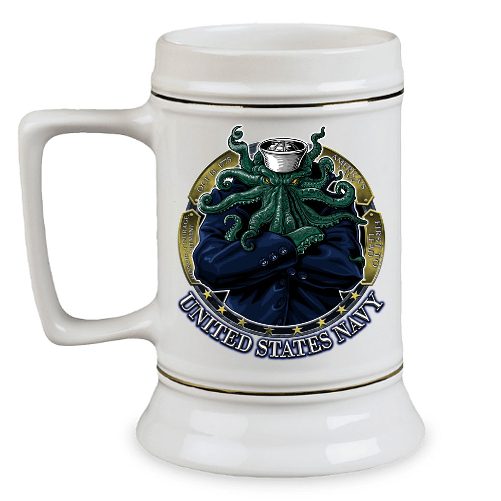 Navy Squid with Peacoat Veteran Navy Custom 28 oz Stein Details