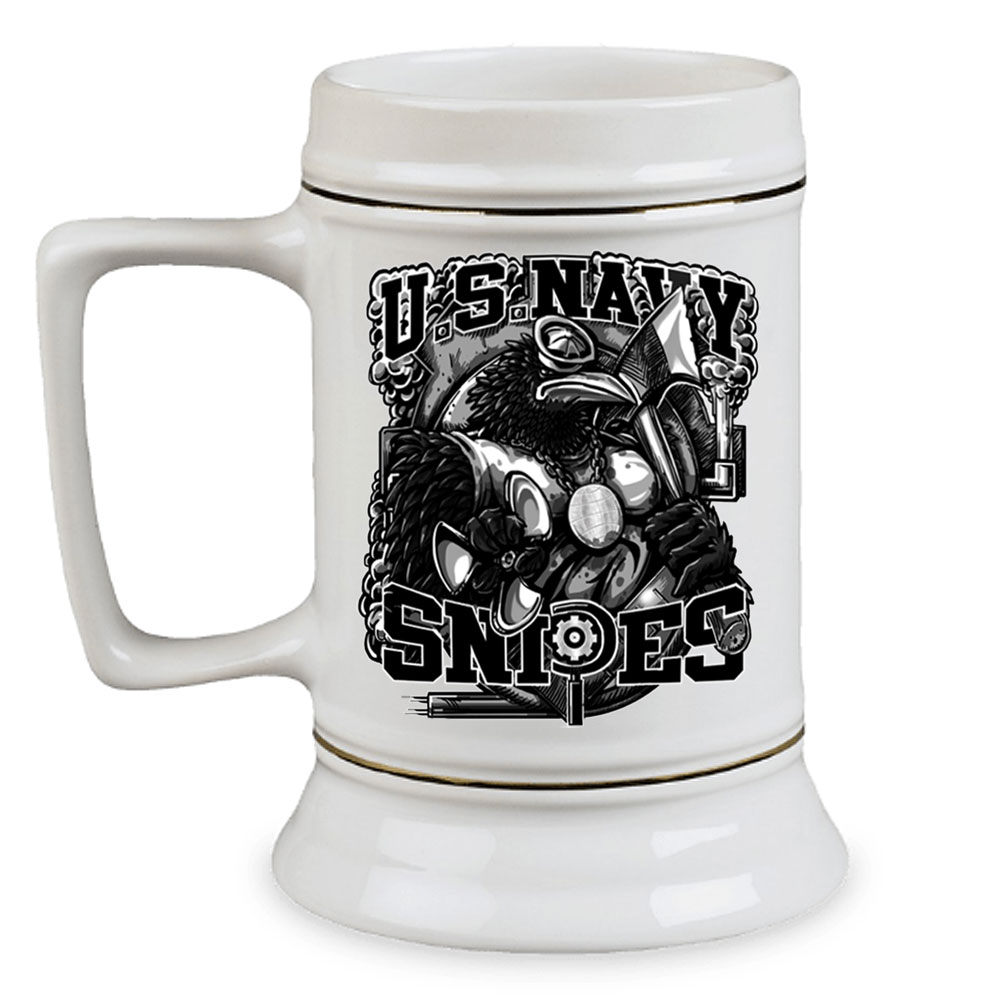 Snipes Rate Navy Custom 28 oz Stein. The United States Navy has a thoroughbred in the fleet and its called a guided missile destroyer. This US Navy Guided Missile Destroyer Custom Stein was designed for the US Navy Sailors that have served aboard these warships that form some of the deadliest weapons that sail the seas. The US Navy Guided Missile Destroyer Custom Stein has features that allow you to add custom text to the design placing name, rate, ship name. dates of service or anything you can think of to be placed on the item and printed just for you.