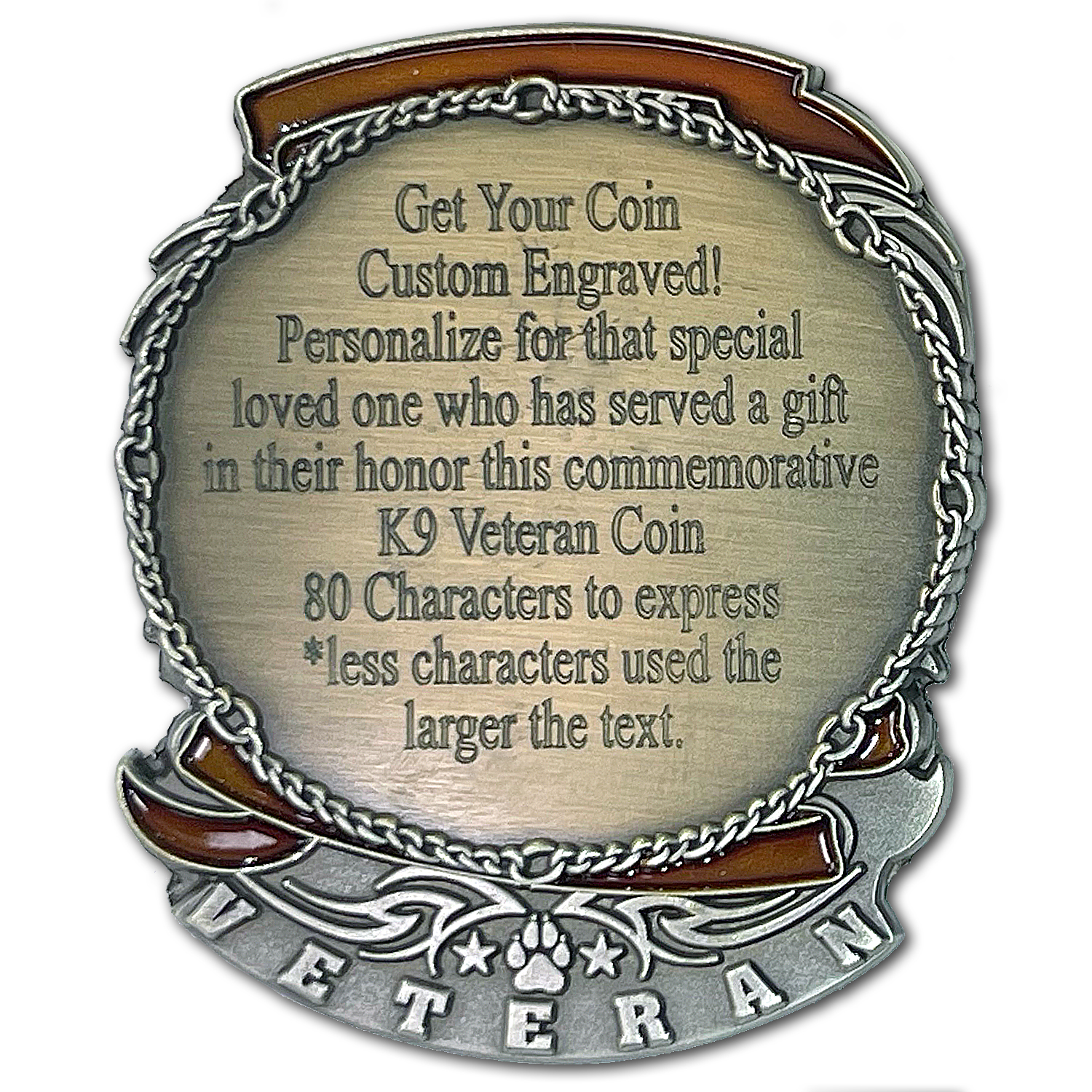 K9 Veteran Custom Engraved Coin Product Details